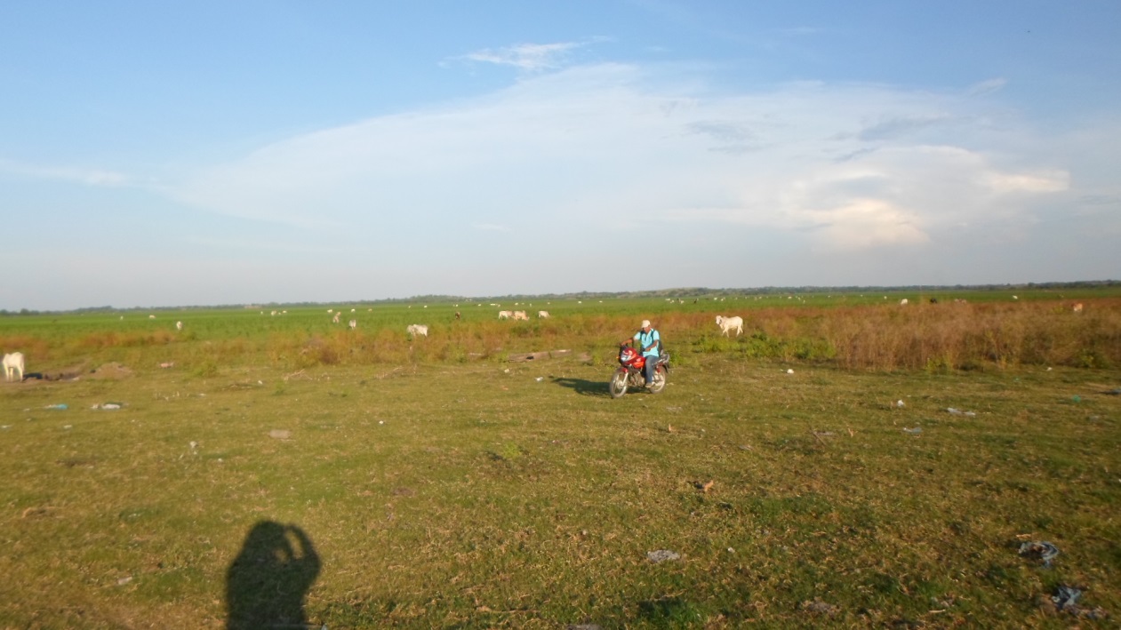 Foto: Estado actual de la ciénaga de Cascajal, totalmente seca con pastoreo de ganado vacuno © CORVIDA, 2016